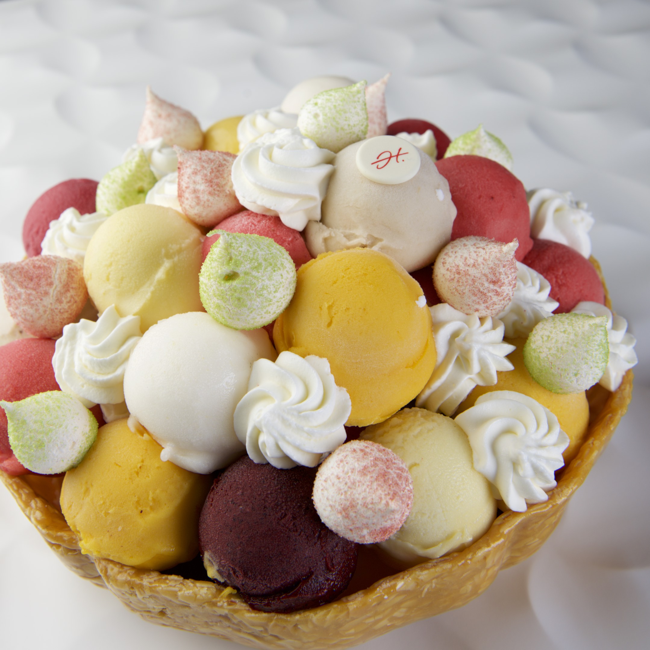 Corbeille en nougatines agrémenter d’un assortiments de sorbets